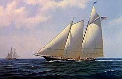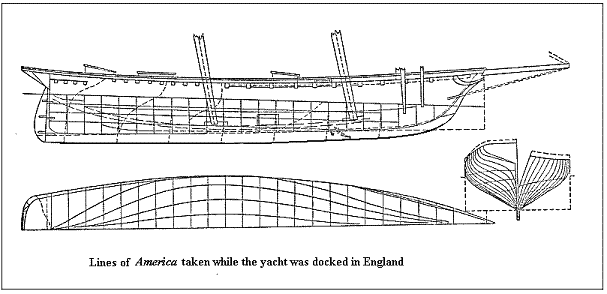 "In the race for the Queen's Cup, there were, I think, seventeen entries, most of which, I believe, started. In addition to them, there were seventy or eighty, or, perhaps, one hundred, under weigh, in and about the harbor; and such another sight no other country, save England, can furnish. Our directions from the sailing committee were simple and direct; we were to start from the flagship at Cowes, keep the No Man's buoy on the starboard hand, and from thence make the best of our way round the island to the flagship from which we started. We got off before the wind, and in the midst of a crowd that we could not get rid of for the first eight or nine miles, a fresh breeze then sprang up that soon cleared us from our hangers-on and sent us rapidly ahead of every yacht in the squadron. At the Needles there was not a yacht that started with us in sight, so that the answer said to have been given to a question from a high personage of who was first---'The America. Who is second? There is no second'---was literally true. After passing the Needles, we were overtaken by the Royal steam yacht Victoria and Albert, with her Majesty and her family on board. They had come down to witness the trial of speed between the models adopted by the old world and those of the new. As the steamer slowly passed us, we had the gratification of tendering our homage to the Queen, after the fashion of her own people, by taking off our hats and dipping our flags. At this time the wind had fallen to a light breeze, and we did not arrive at the flagship until dark. I could not learn correctly at what time, or in what order the others arrived. The cup before you is the trophy of that day's victory." - Commodore John Cox Stevens, at the New York Yacht Club dinner, Oct. 3, 1851. |