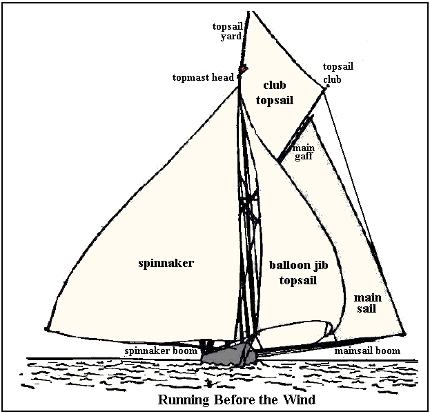 The early America's Cup races from 1870 through 1876 were sailed primarily in schooners. After that the cutter took over the scene from 1881 to 1887. For the years 1885, 1886, and 1887 respectively, Edward Burgess of Boston designed Puritan, Mayflower, and Volunteer, all successful cup defenders. In 1893 a new era for the America's Cup and sailboat design began with the era of the '90 footers' (LWL). These were the largest and most impressive of all the America's Cup yachts. The 1893 defending sloop Vigilant was 125-foot LOA and the first of five successful Cup defenders designed by Nathaniel G. Herreshoff considered by many to be the father of modern sailboat design. (His next four defenders were Defender [1895], Columbia [1899 and 1901], Reliance [1903], and Resolute [1920].) The era of the '90 footers' lasted until 1903 climaxing with the race between Reliance and Shamrock III. The existing rule during this era rated only two of the three major speed-related parameters of a sailboat, length and sail area. As either the length or the sail area increased, the rating increased. Little else was considered. Displacement wasn't rated at all. With no rule to regulate it, displacement became very light, and construction often became somewhat flimsy to keep the boat reasonably stiff despite the lack of weight. The yachts became too expensive, complicated and potentially dangerous. Only one major constraint was imposed, the load waterline length of the boat could not exceed 90 feet. The result was an evolution that produced an extreme scow-type yacht. Length was measured only at the waterline, so the rule produced a boat with very long overhangs. On Reliance these reached 22 ft forward and 26 ft aft. These long overhanging ends gave extra length on the water when heeled. Sailing close hauled, in seven or eight knots of breeze, the effective waterline length of Reliance would stretch out from 90 ft to nearly 130 ft, allowing the boat to achieve much greater speed. The fin shaped keel came down very deep. The boat would easily settle into a comfortable heel very easily taking advantage of 16,159 sq ft of canvas on a single mast, approximately 2000 sq ft more than the challenger Shamrock III. |