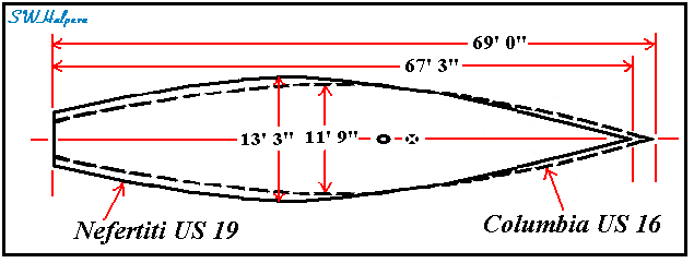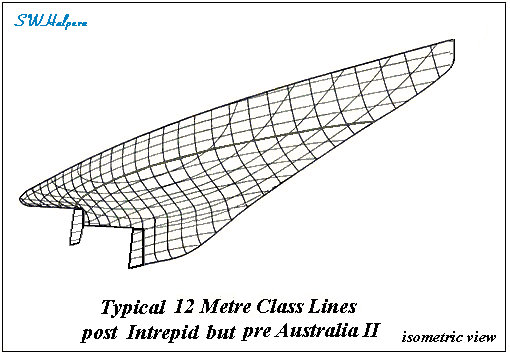 | Following the era of the J boats came the 12 metre class from 1958 to 1988. It was during the 1962 defense of the cup that I got interested in yacht design as a hobby after reading about Ted Hood's approach to designing the new defender candidate Nefertiti (US 19) which went up against the older 12 metre boats: Columbia (US 16), designed by Olin Stephens, Weatherly (US 17), designed by Philip Rhodes and modified in 1962 by A.E. "Bill" Luders, and Easterner (US 18), designed by C. Raymond Hunt. Nefertiti came very close to defending the America's Cup in 1962. Ted Hood took a different approach to the 12 Metre Rule producing a yacht with greater beam and less displacement (which happened to give her the largest interior volume of any of the Twelves). The idea was to build a yacht that was a platform to optimise the sail plan. Non of the other yachts could catch Nefertiti on a reach. "Neffy" ousted both Easterner and Columbia in the 1962 Defender's preliminary trials. In the Defender Finals, however, the older 1958 boat Weatherly proved to be the boat to beat in the lighter breezes of August. Weatherly went on to win the America's Cup that year against the Australian 12 metre Gretel. |