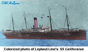 Light on the Horizon This four-part article takes a fresh look at the question concerning the location of the Californian on the night of April 14/15, 1912. Unlike some previous methods used by others that relied heavily on selective subjective evidence, the methods I used were based on a comprehensive scientific approach that took into account several independent analytical methods as well as the now known location of the Titanic wreck site. (Published in the Titanic Historical Society's journal The Titanic Commutator, starting in Vol. 31, No. 177.)