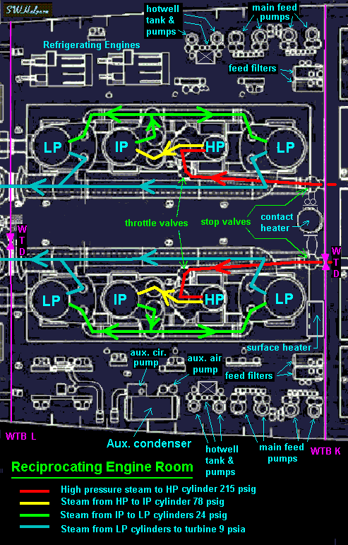 compartment was the reciprocating engine room with the two reciprocating